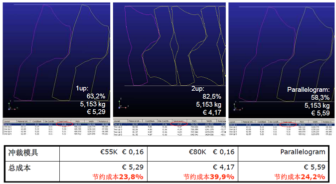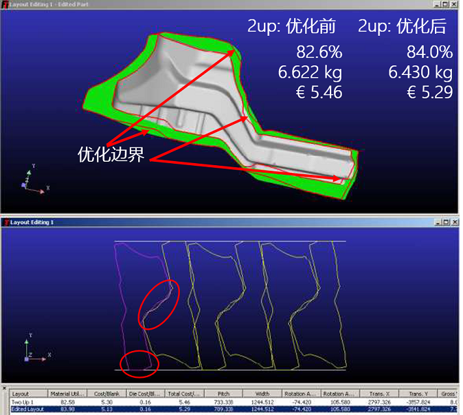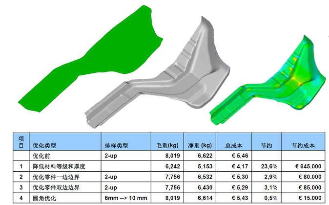 解決方案3 通過修改兩邊零件邊界降低材料成本,總成本節(jié)約3.1%
