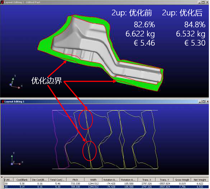 解決方案2 通過修改一邊零件邊界降低材料成本,總成本節(jié)約2.9%