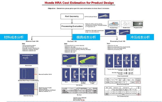 FTI成本分析工具嵌入到EB7產(chǎn)品開發(fā)系統(tǒng)中,模板化分析報表,實時成本分析報告集成至工作流中,F(xiàn)TI幫助本田建立鈑金件早期成型及成本自動分析系統(tǒng)。