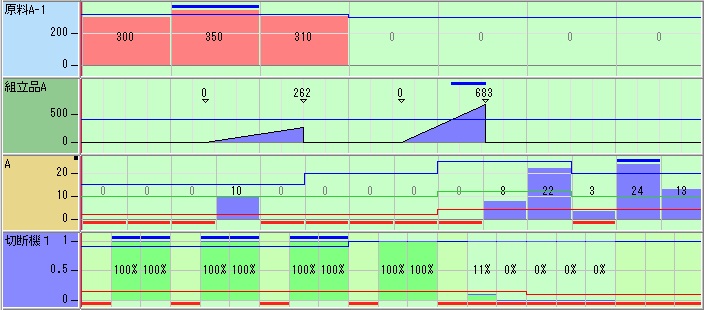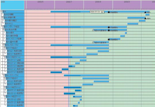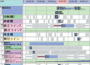 為了調(diào)整各資源上的工作順序的、表格式的圖表。用鼠標(biāo)拖動(dòng)表示工作的單元格、可以變更資源上的工作的順序、以及工作的利用資源。