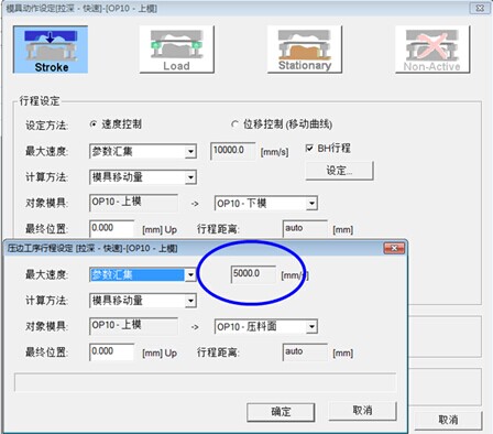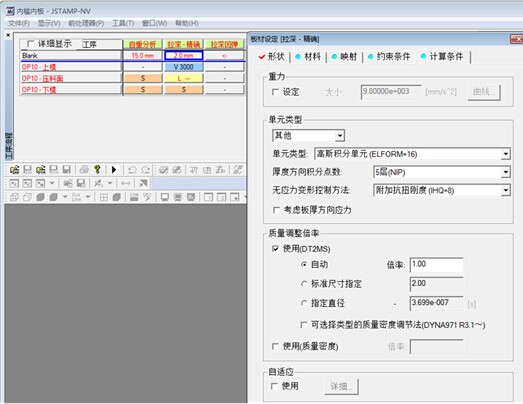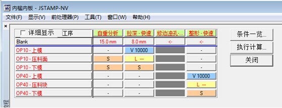 對仿真模板中的所有工序中的控制參數(shù)進行相應的設定,模具名稱、模具動作、坯料網(wǎng)格大小等參數(shù)都要根據(jù)具體的仿真目的進行優(yōu)化設置。