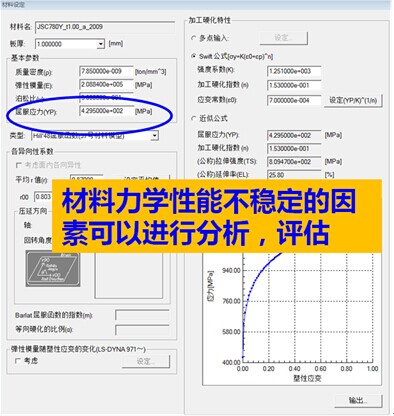 仿真模板還可為工序選擇合適的材料模型,并可以考慮鋼板材料本身力學性能波動的影響。