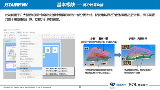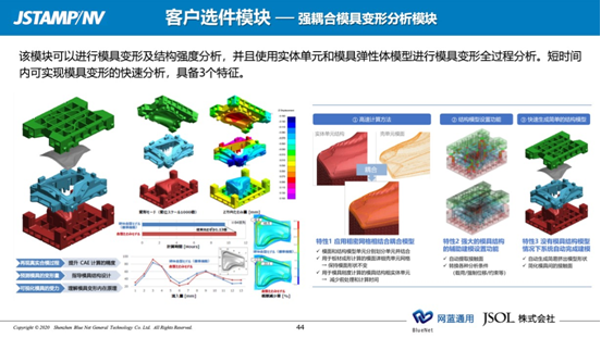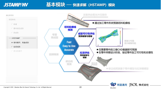 眾所周知,使用 CAE 工具輔助沖壓零件開發(fā)及模具設(shè)計是目前解決沖壓件面臨的成形性及回彈控制等困境最有效的手段。如果大家在企業(yè)的發(fā)展過程中也面臨如上表所述的需求與挑戰(zhàn),強烈推薦大家嘗試導(dǎo)入JSTAMP 軟件來破局。借此向大家簡要概述 JSTAMP 軟件有哪些功能模塊并且可以具體給我們帶來哪些價值?