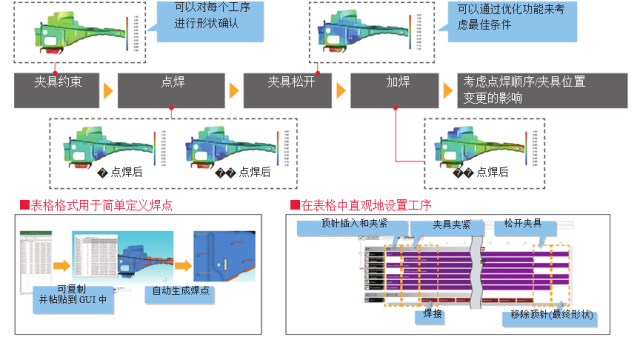 夾具、插銷(xiāo)和非夾緊等組裝工序可以以表格形式進(jìn)行管理。